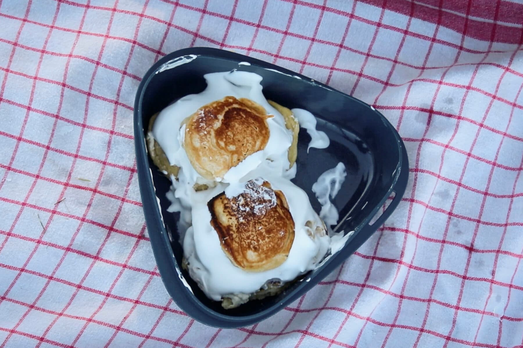 Vispa grädden. Vill du göra det enkelt när du är utomhus? Häll grädden i en burk med ordentligt lock (till exempel burk från Light My Fire Mealkit) och skaka tills grädden är lagom! Vi gjorde den fluffig men inte för hårt vispad. Ha tålamod – det kan ta en stund!
