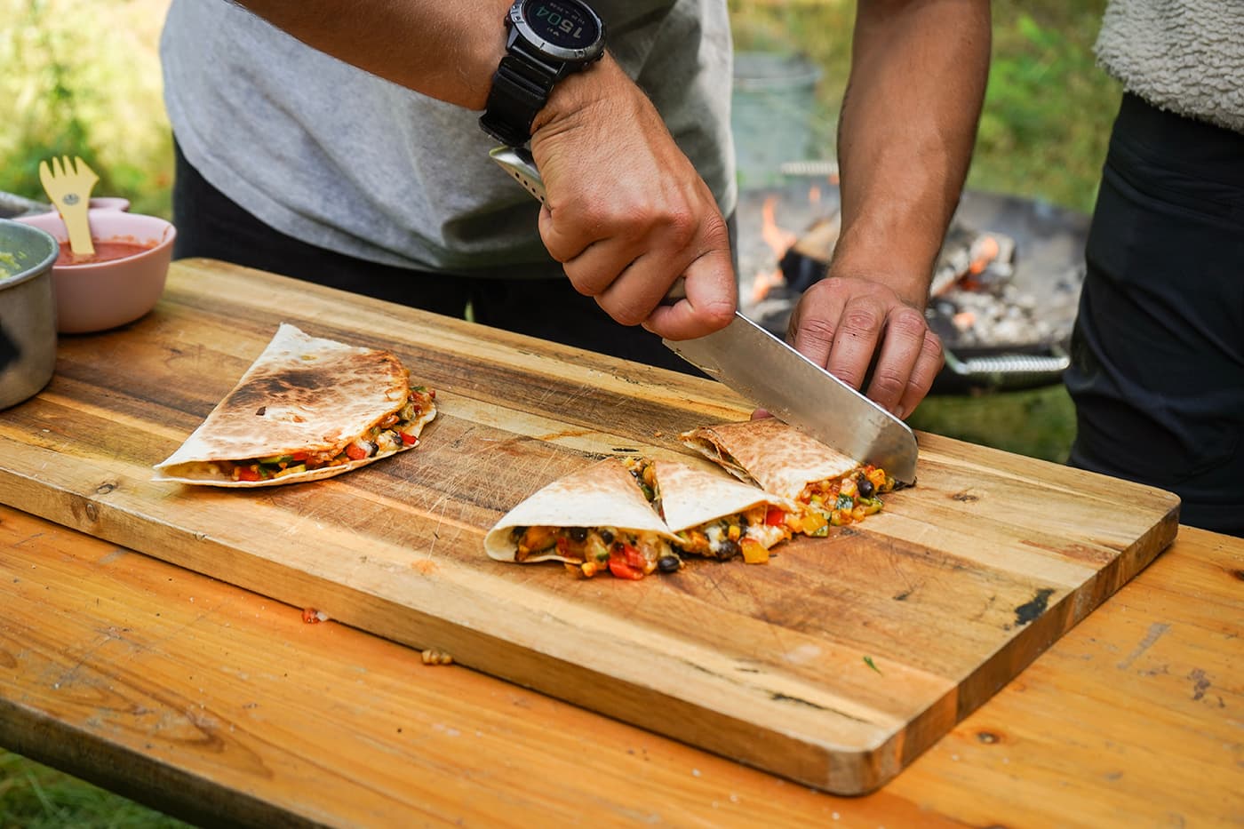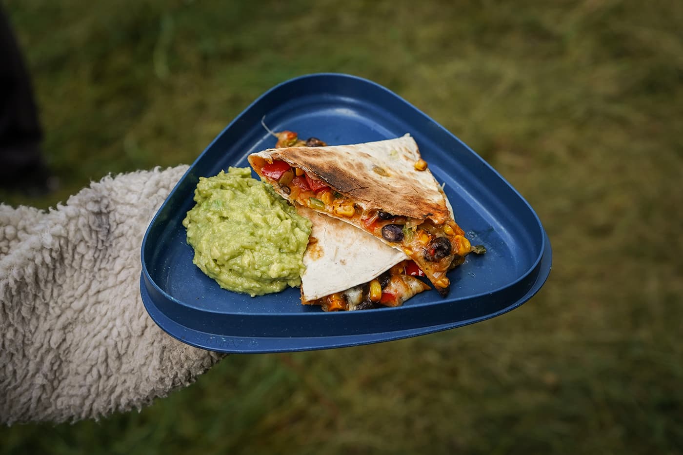 Njut av dina vegetariska quesadillas runt lägerelden!