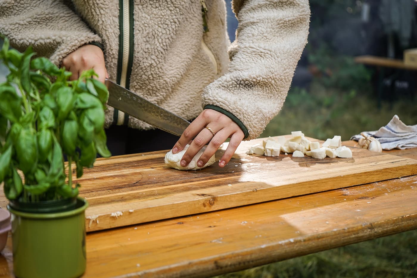 Vi ville ha tips på enkla, goda och vegetariska rätter att laga utomhus och tog Dante Zia till hjälp! Hans gnocchi med tomatsås och mozzarella är både god och mättande, och blev en riktig succé när vi bjöd ett gäng hungriga scouter på varsin portion.