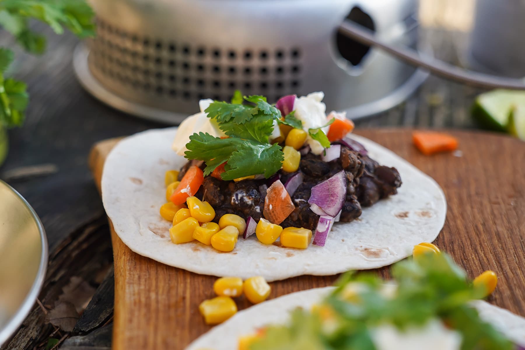 Det här är ett recept som är så smidigt att göra ute, och där du kan variera tillbehören precis efter vad du har hemma och vad du är sugen på. Antingen hackar du upp allt hemma, eller så gör du det på plats.