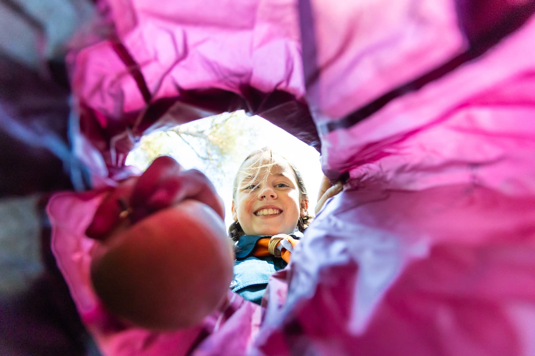 Scouterna går igenom alla ryggsäckar. De räknar hur många fack och remmar de har och inspekterar remmar och dragkedjor. Men det finns fortfarande en säck kvar att testa, som skiljer sig från de andra dagryggsäckarna. Nämligen – gympapåsen. Ni vet den som ofta står med som en alternativ dagryggsäck på kårens packlista för lägret. Gympapåsen som scouterna testar den här dagen är lite sliten och har tryck med en gul och glad minion.