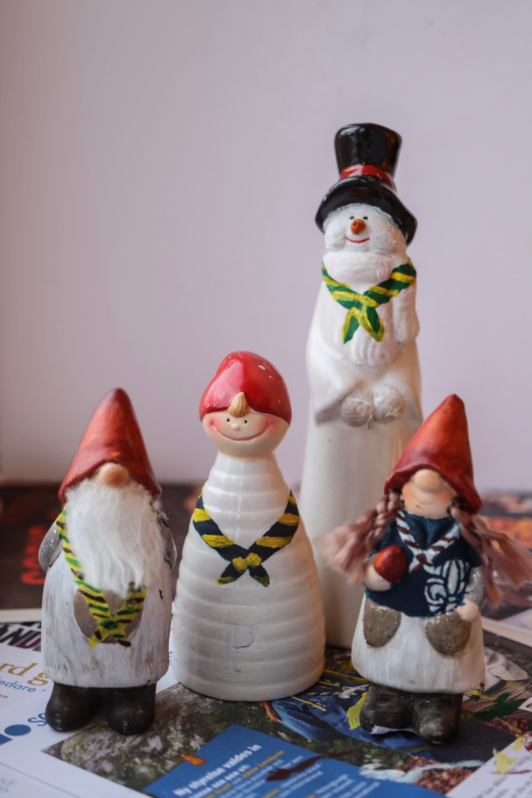 Nu fylls second hand-butiker med tomtar och vintriga porslinsfigurer. Förvandla dem till scouter med vanlig akrylfärg!