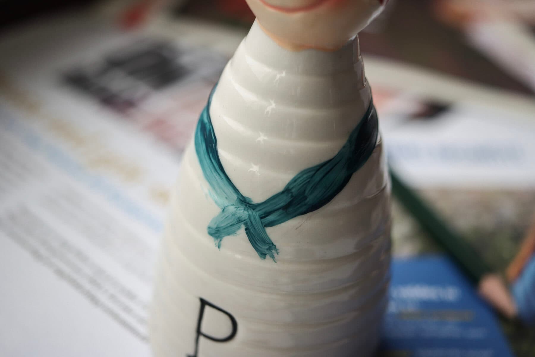- Måla halsdukens bottenfärg runt figurens hals.
