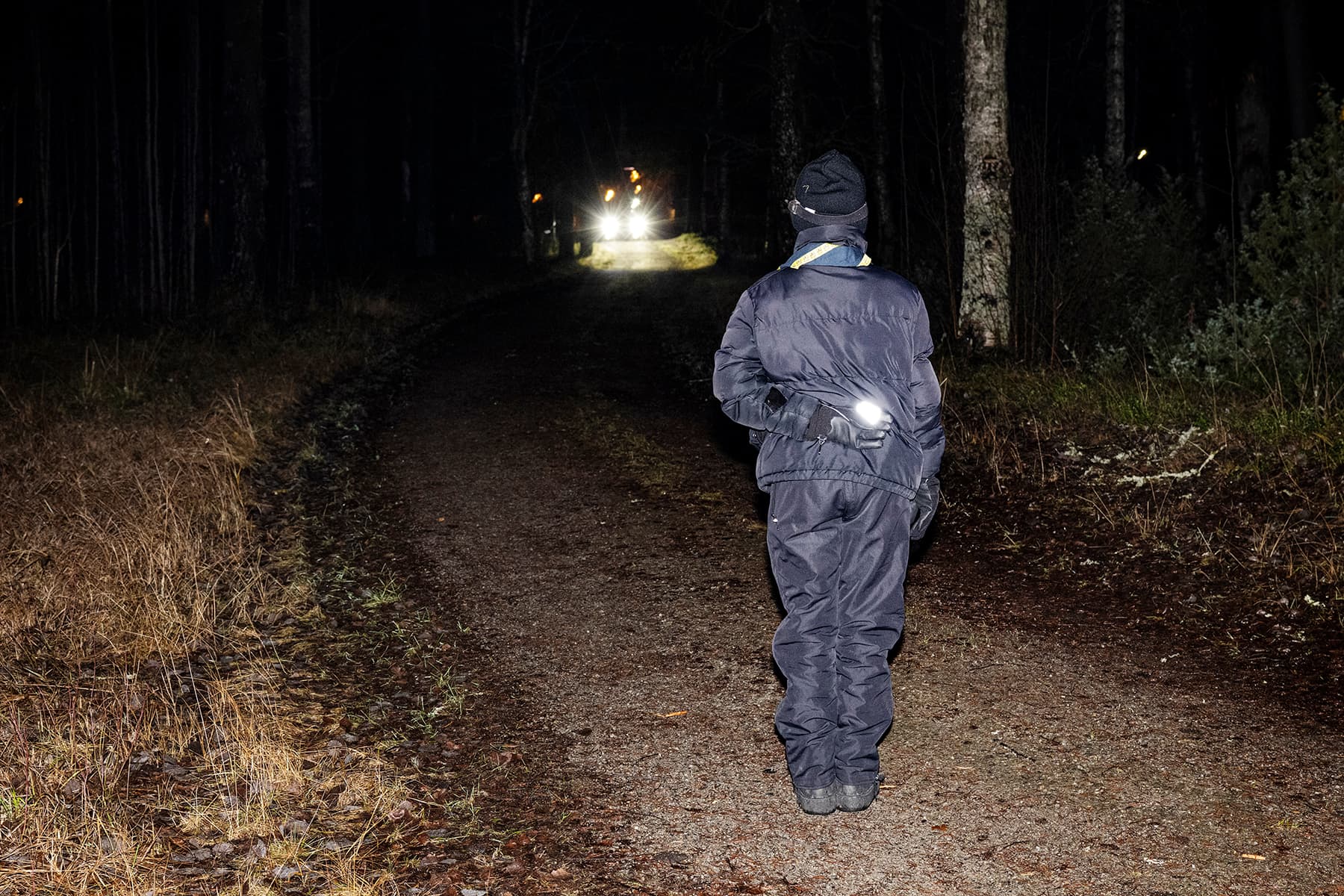 – Det är väldigt mörkt här. Men vår testpatrull har koll på mörker nu och på poängen med pannlampor och reflexer, säger Sofia Jonsson.