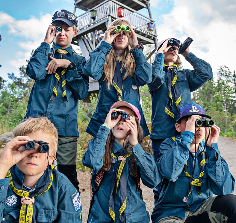 Självklart ska man ha en kikare med sig ut i naturen. Det var testpatrullen från Tegs Scoutkår i Umeå helt överens om. Flera av scouterna var också vana vid att använda kikare.