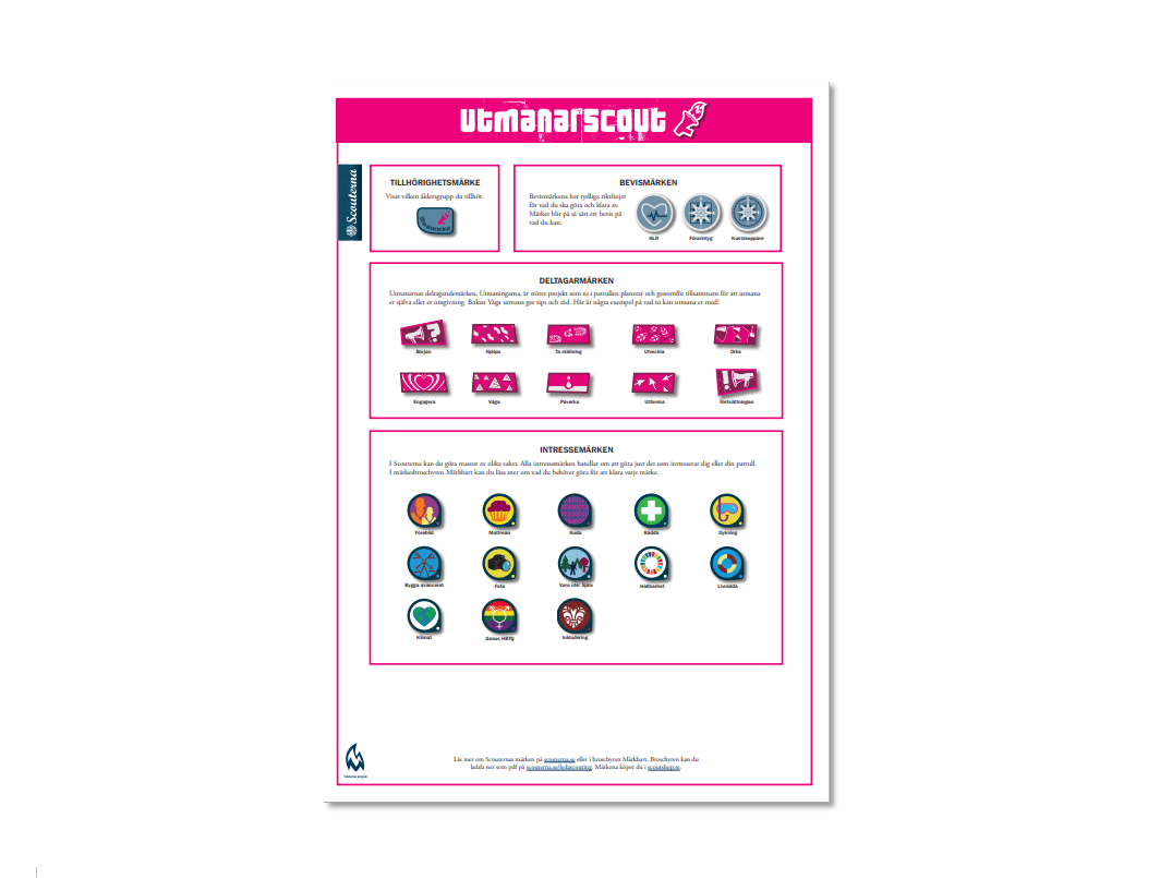 Om du vill se vilka märken som finns, så kolla i vår märkesbank, i Scoutshopen eller bläddra igenom broschyren Märkbart där märkena också finns samlade.